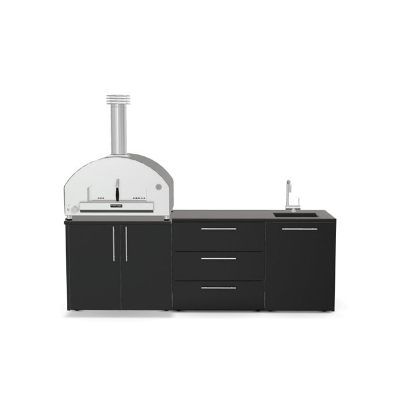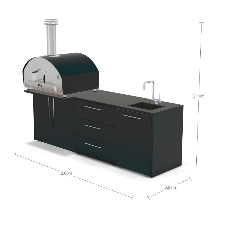 LINEARE, 2,45 metrelik uzunluğuyla küçük alanlara saygı duyan, bahçede bir akşam yemeği için ihtiyacınız olan her şeye sahip olmanızı sağlayan bir versiyondur. Her detay, maksimum pratiklik ve stil sunmak üzere tasarlanmıştır. Dış mekanınızı Fontana Forni'nin kalitesi ve özel tasarımıyla kişiselleştirin ve zenginleştirin.